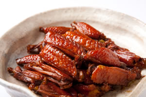 焼き豚のタレに剣崎なんばを加えて、手羽中をピリ辛に仕上げました。